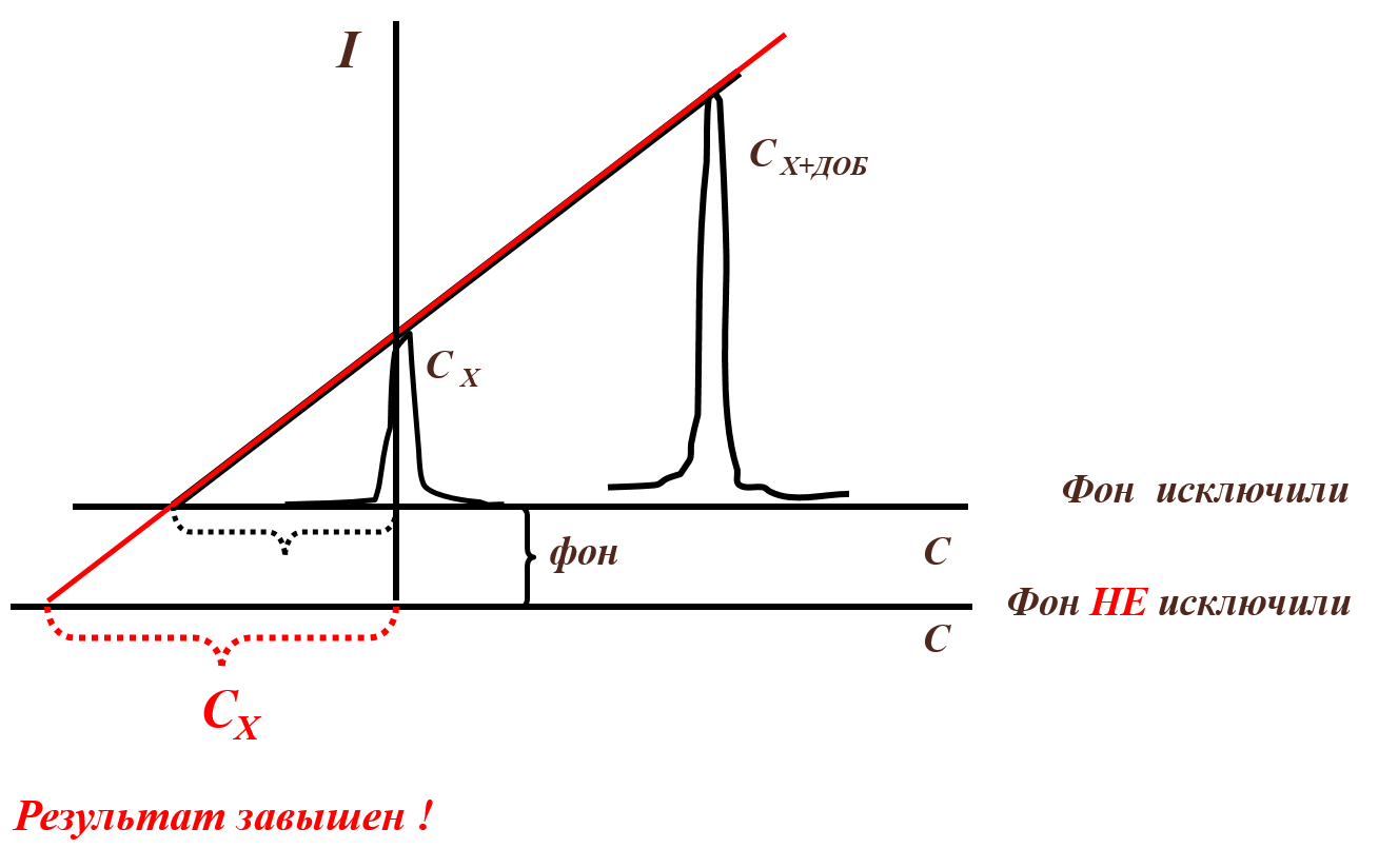 Метод добавок устраняет влияние примесей, если примесь не создаёт свой сигнал. Величина добавки должна увеличивать сигнал не более чем в 2 раза.